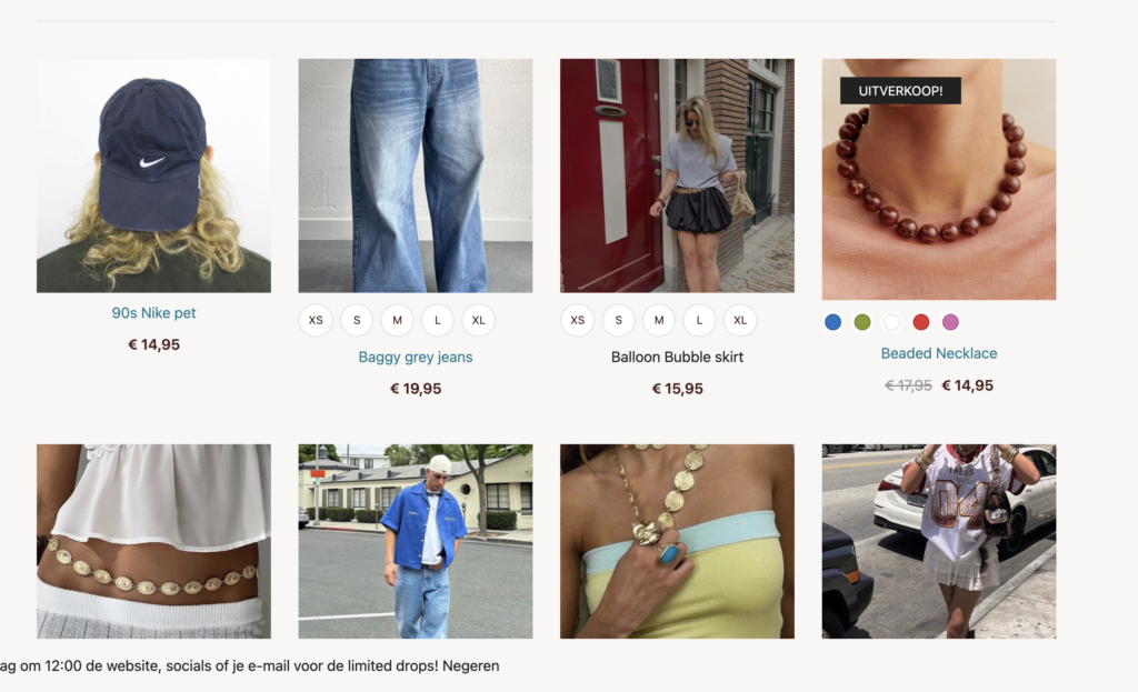 Daarnaast communiceerde ik het aantal beschikbare producten per item. Door te tonen hoeveel stuks er nog op voorraad waren, werd een gevoel van urgentie gecreëerd, wat bezoekers aanmoedigde om sneller door te klikken naar de productpagina’s.